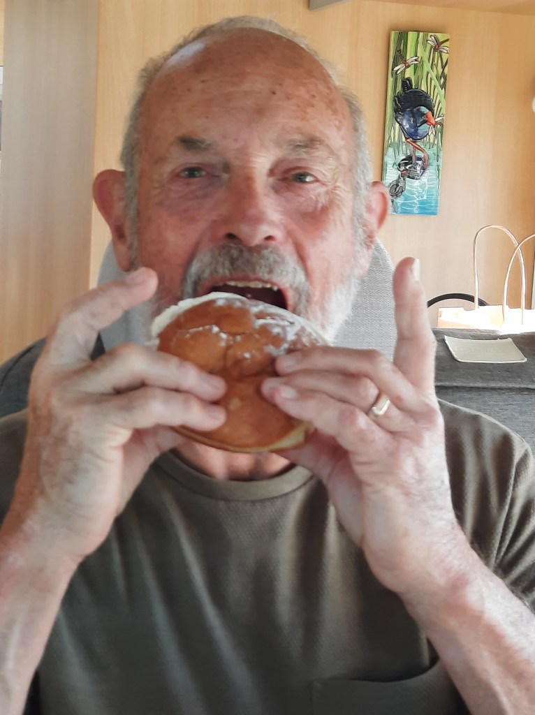 After getting the fridge fixed we made our way out of Christchurch and headed south firstly to Ashburton and then on to Tekapo. A compulsory stop along the way was to Fairlie, to the famous bakery cum pie shop there. Following our friend Dianne’s recommendation, we did not get a pie, but Bruce could not resist the cream doughnut. He enjoyed every bite.