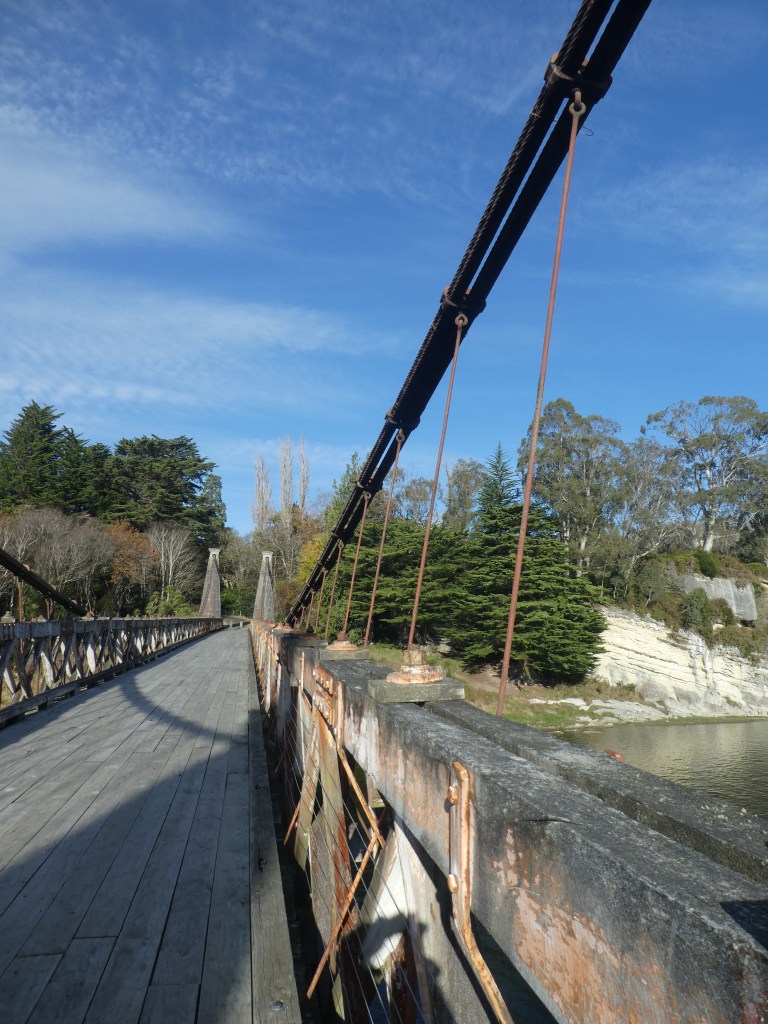 The Cliften Suspension Bridge was built in1898 at a grand cost of 5007 pounds sterling, as a reliable way of crossing the fast flowing Waiau River. It was converted to a walking bridge in 1978 when a new concrete, 2 lane bridge was built just down the road a bit.
