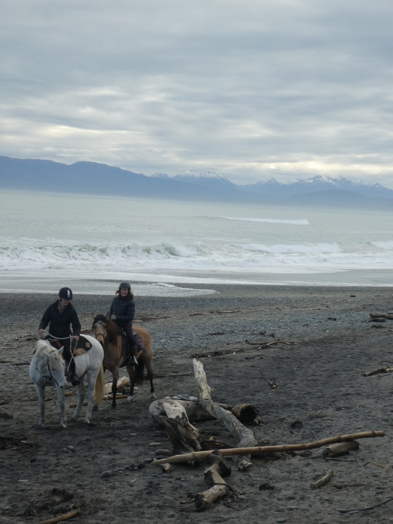 After leaving Manapouri we headed further south towards the coast, intending to spend a night at Monkey Bay. This was a distance of 102 kilometers, and in all that time we must have shared the road with 3, maybe 4, other vehicles. One of those was a red van, converted into a bit of a camper that stopped at the Clifden Suspension bridge at the same time we did. It was driven by a delightful lady who had a four month old puppy that Beau was pretty keen to have a game with.