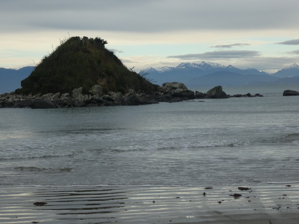 Last stop for the day was Monkey Island. It is a bit of a stretch to call it an Island really as it is a bit of a hill that is accessible from the beach at low tide. Apparently it got its name because Monkey winches were used to hoist boats out of the sea onto the island. There are no traces of the winches now, but some wooden stairs have been built to the top of the knob as a lookout. The mountains in the distance are part of Fiordland.