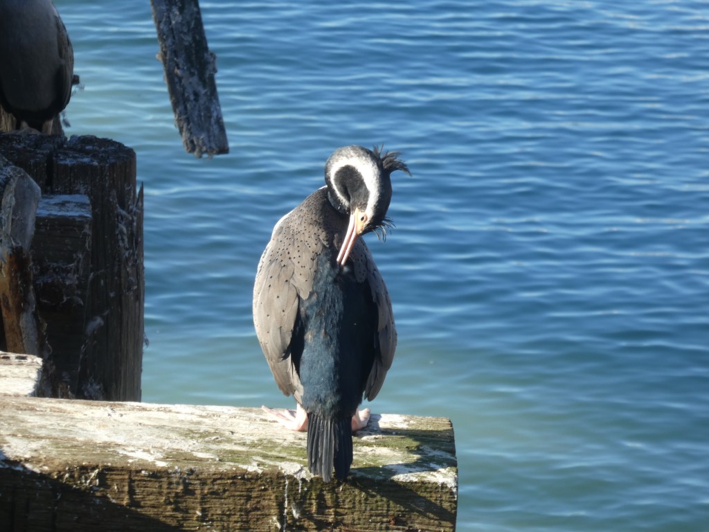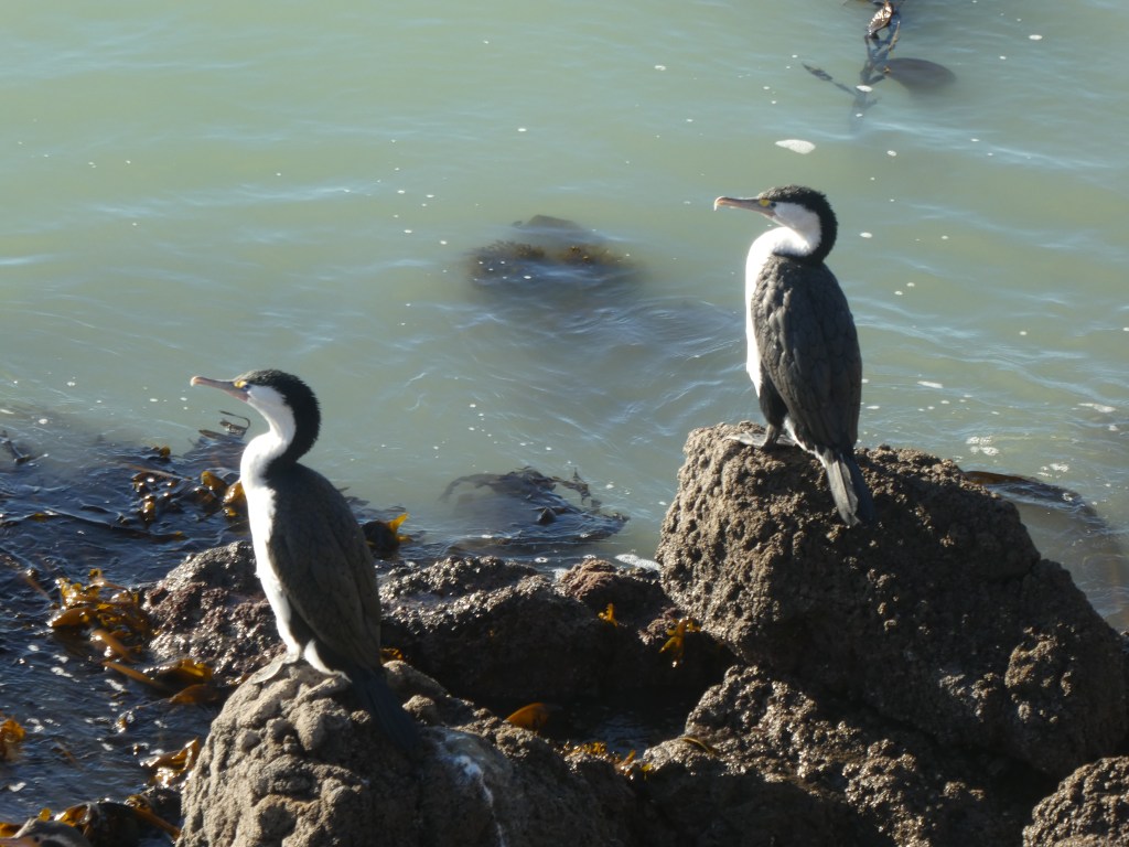 The smell coming from the wharf was quite powerful. A few spotted shags roosted on some rocks nearby, and it is probably as close as they are allowed to get.