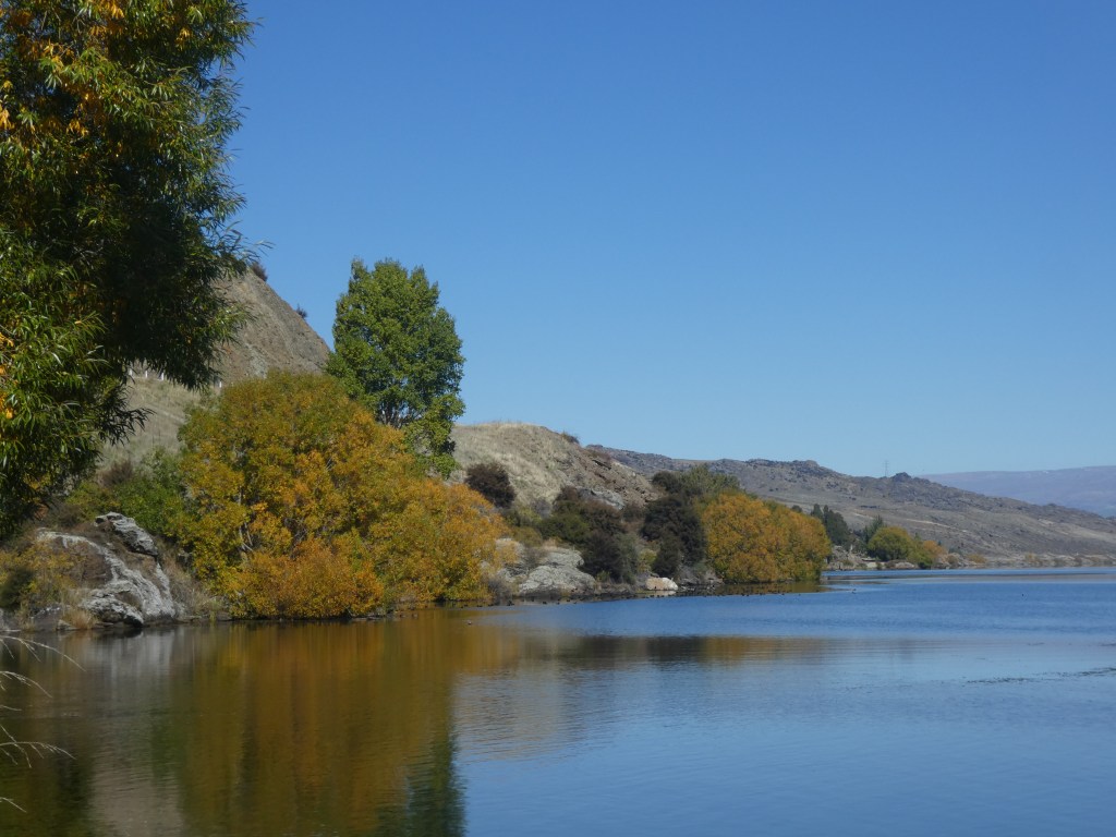 The landscape around here is probably the most barren in New Zealand. It is dry, rocky, steep and forbidding, and the only real colour is from the river running through it (the Clutha).
