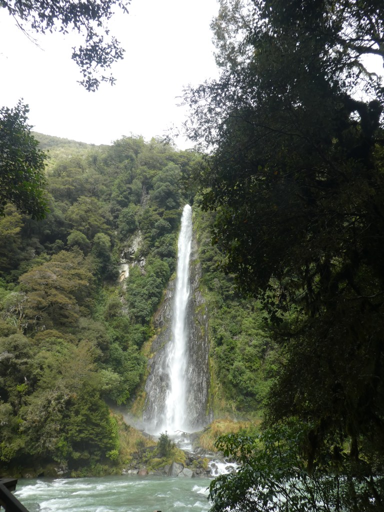 We took our time driving from Haast to Wanaka, intending on staying there overnight. Today’s trip became an exploration of a series of waterfalls, and they all had plenty of water going over them thanks to the rain last night.