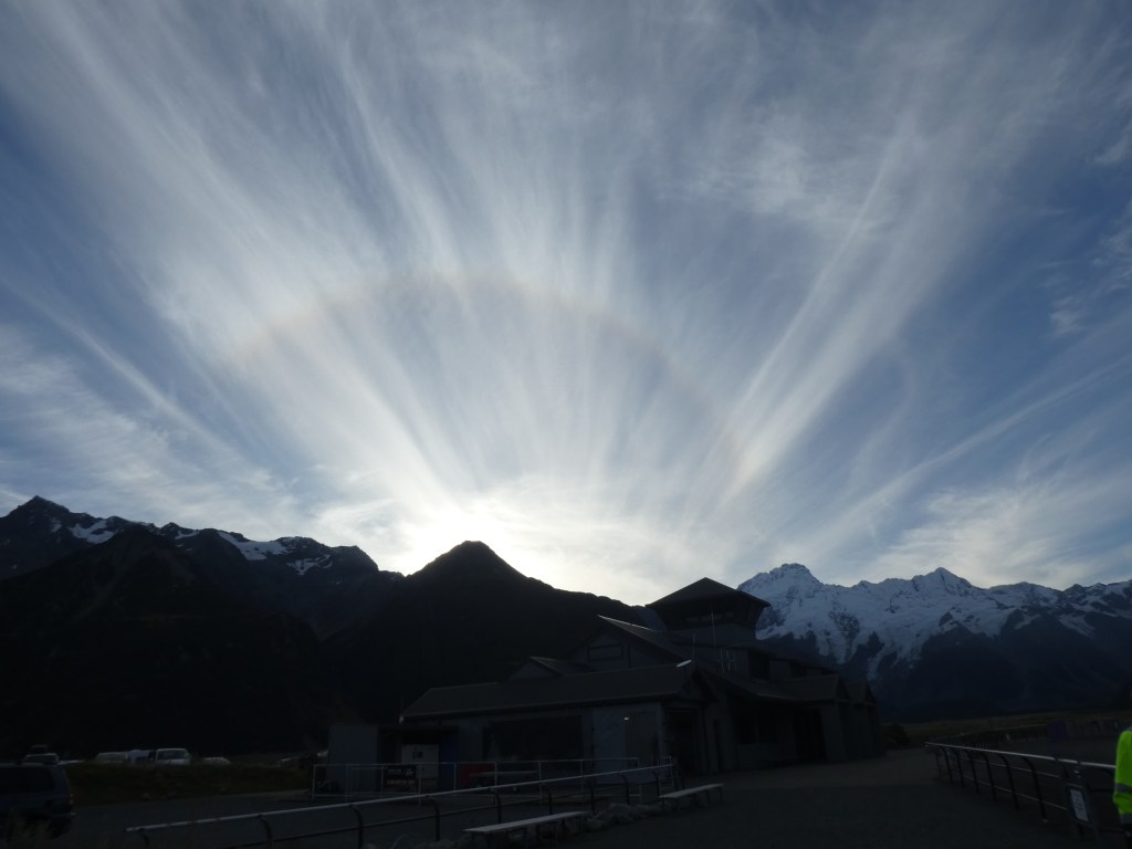 The flight itself was amazing. We could almost touch the mountains we were flying next to. We could see all faces of Mt Cook at different times during the flight, the beginning of the Fox Glacier, the Murchison and Tasman glaciers, and their lakes. Normally this trip lands on the beginning of a glacier, but it was too windy to do that today, so we landed on a mountain top instead. We trudged up the icy, slippery snow, and stood there, breathless in wonder, watching the sun set against Mt Cook.