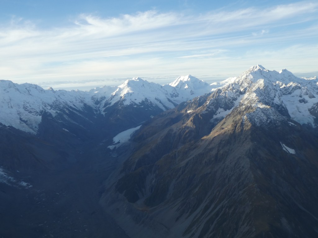 We were then going to head towards Tekapo when Bruce made a surprising turn off towards the little Mt Cook airfield. He thought he would take a chance on there being a helicopter flight up into the mountains, and this time we were lucky. This was the 4th time we had tried, and in the end, it was a brilliant afternoon for it. The forecast for the next day or so is for rain, and we were also running out of time in this area.