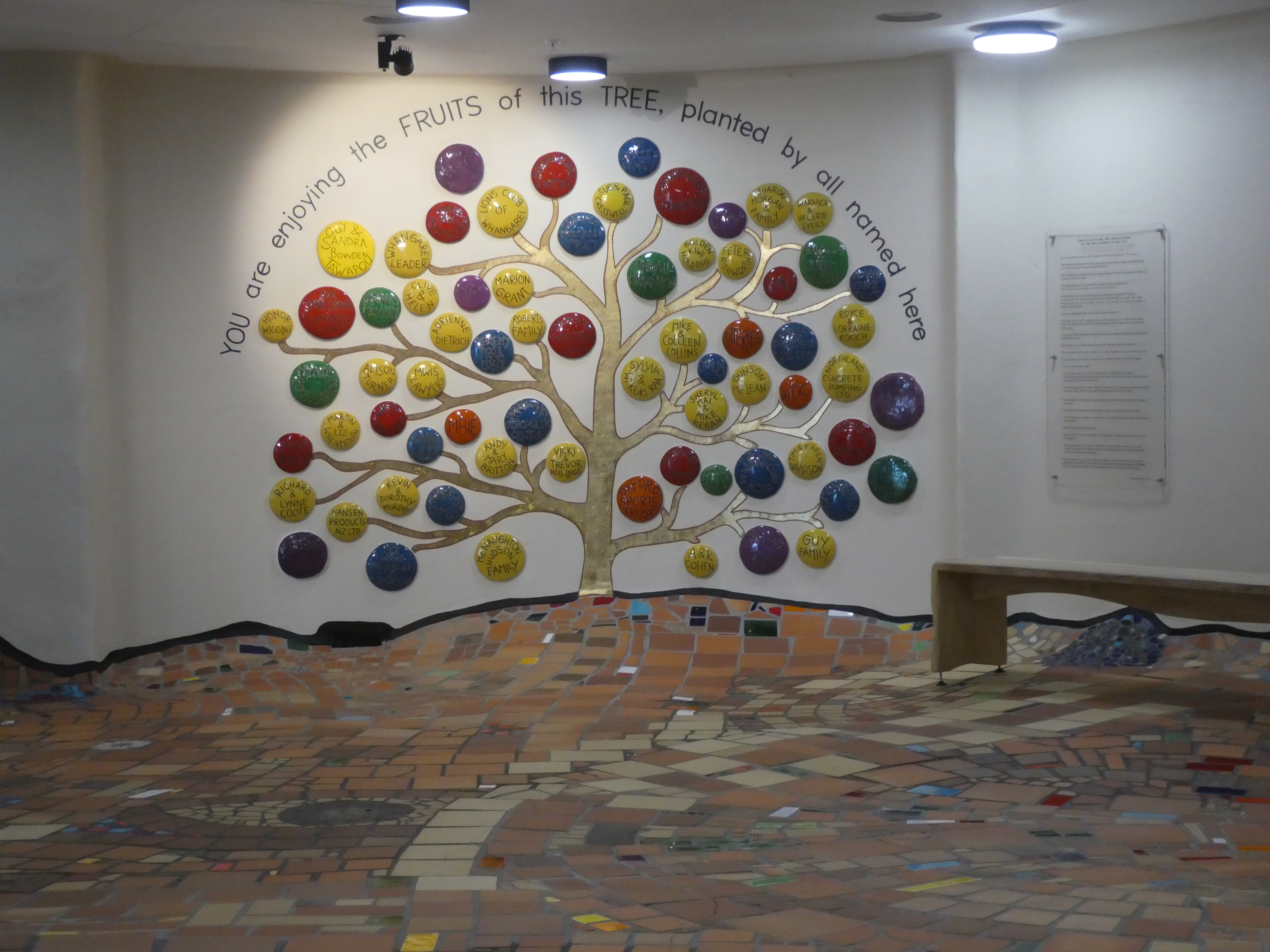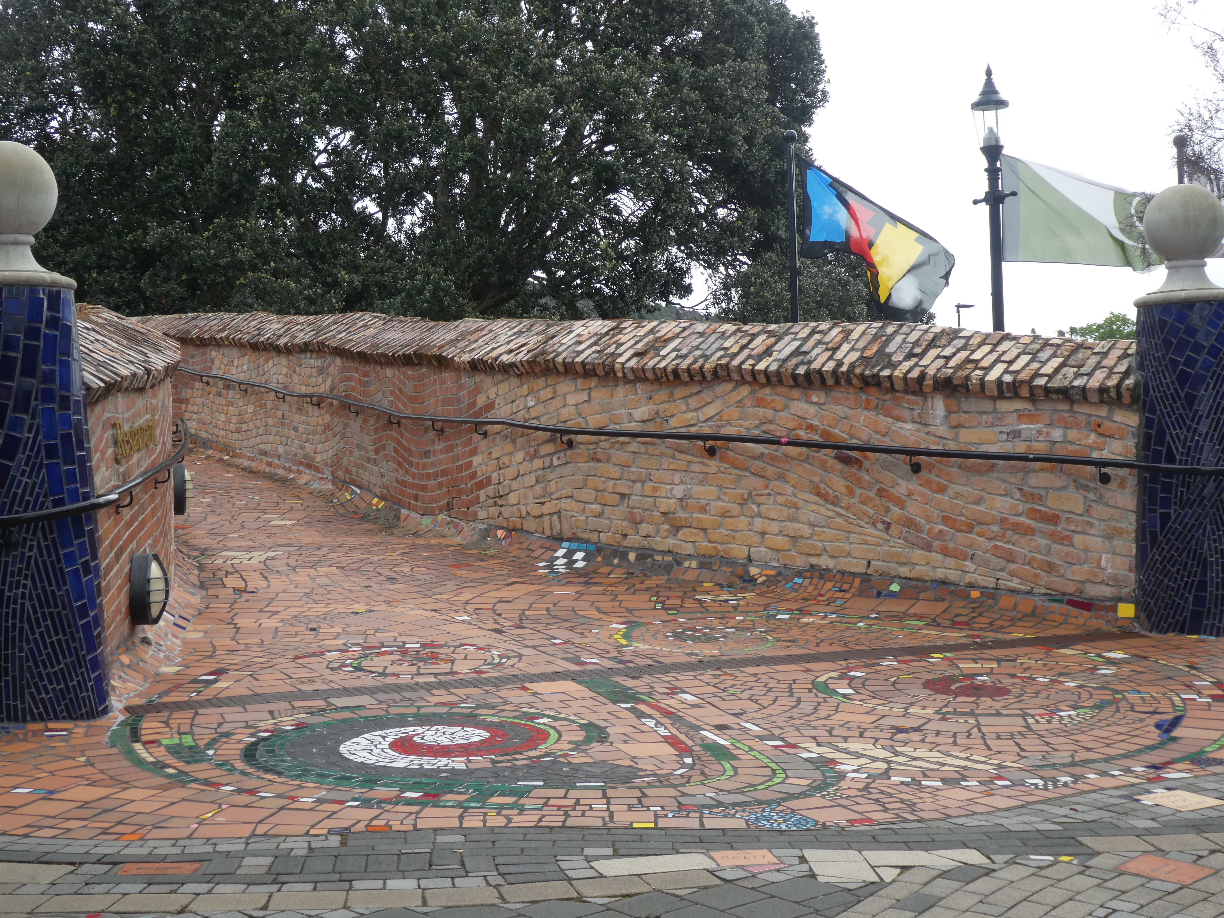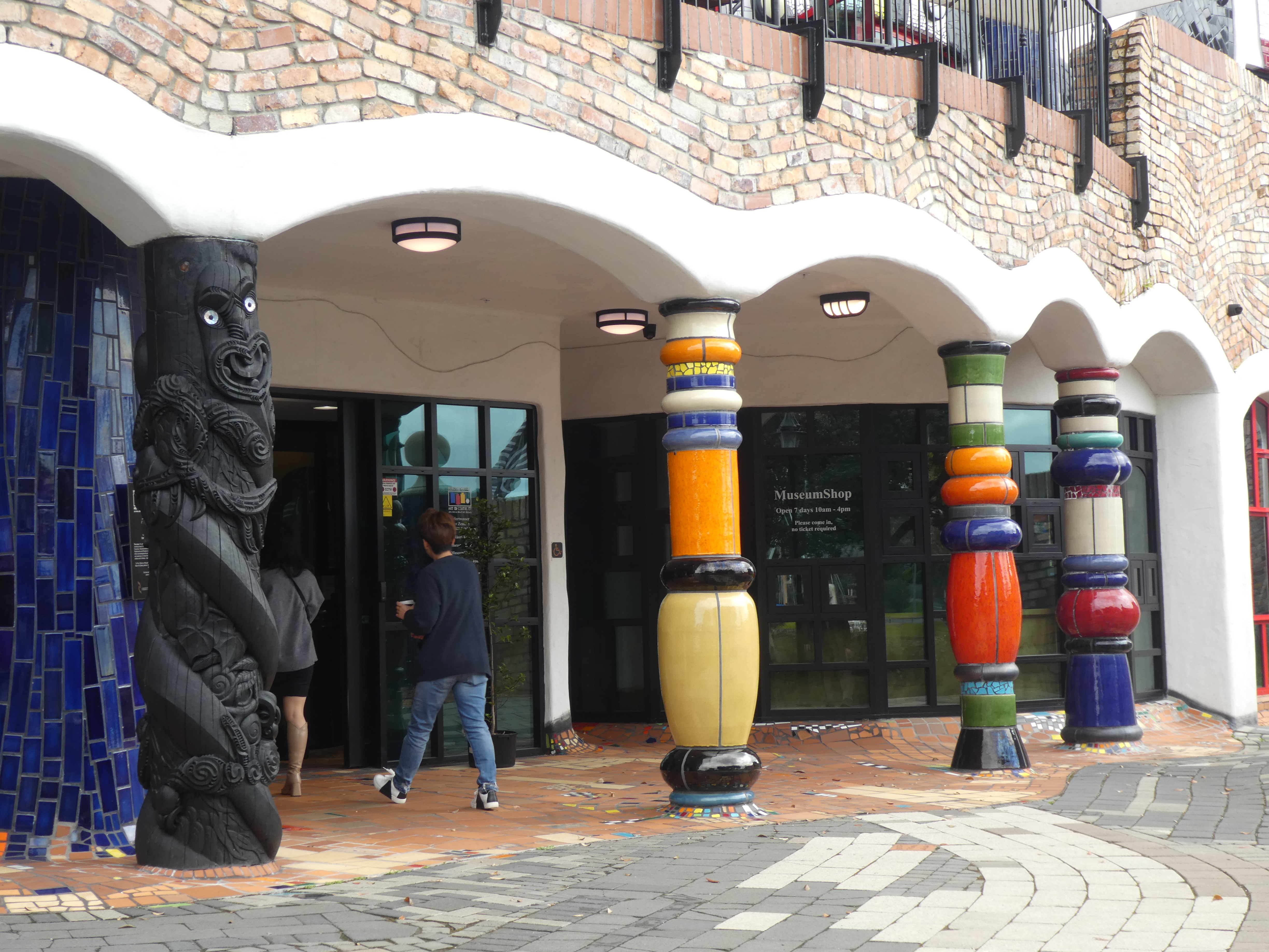 The cafe at the gardens wasn’t open today, so after a stroll we headed in to town to visit the Hunderweisser Gallery. What and amazing place – not a straight line to be seen, and lots of colour.