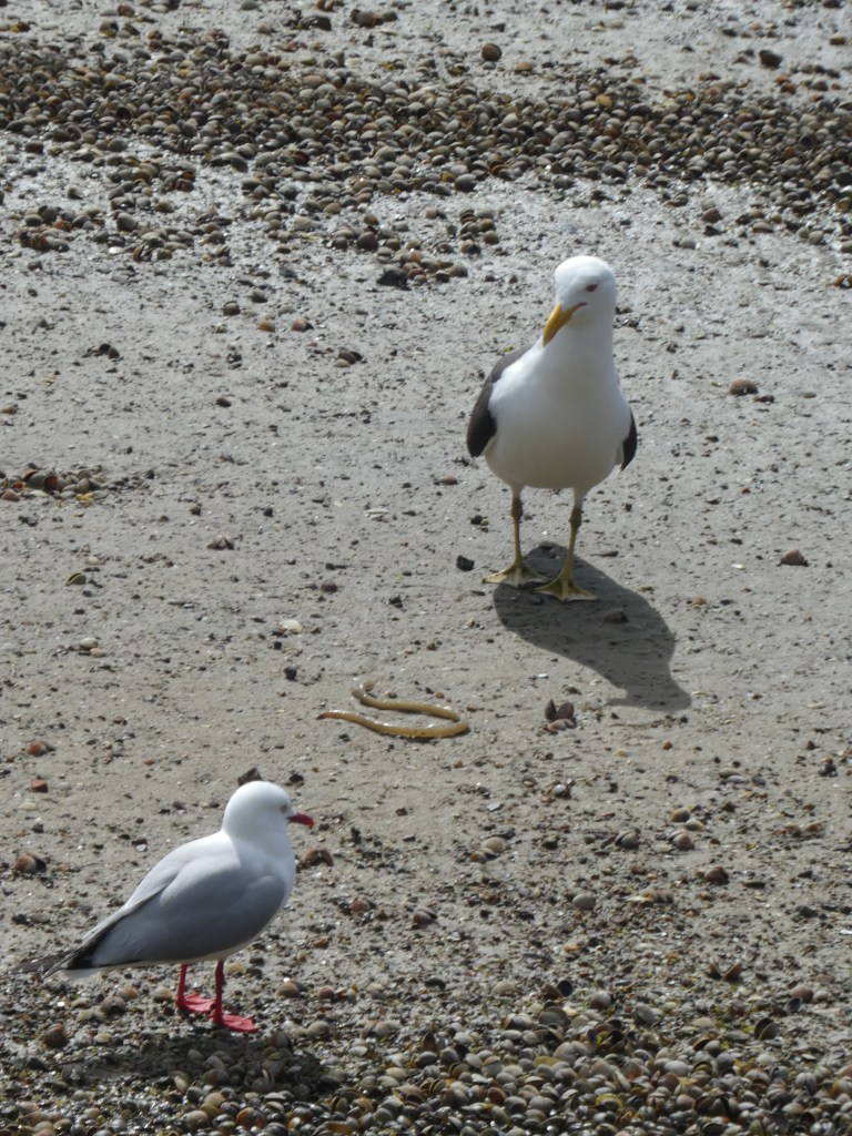 A group of gulls (both red billed and black backed) were having a squabble over what looked like a small sea snake, that was still very much alive. A blue heron was hovering very close by in case there was a chance that he could nab it as well.
