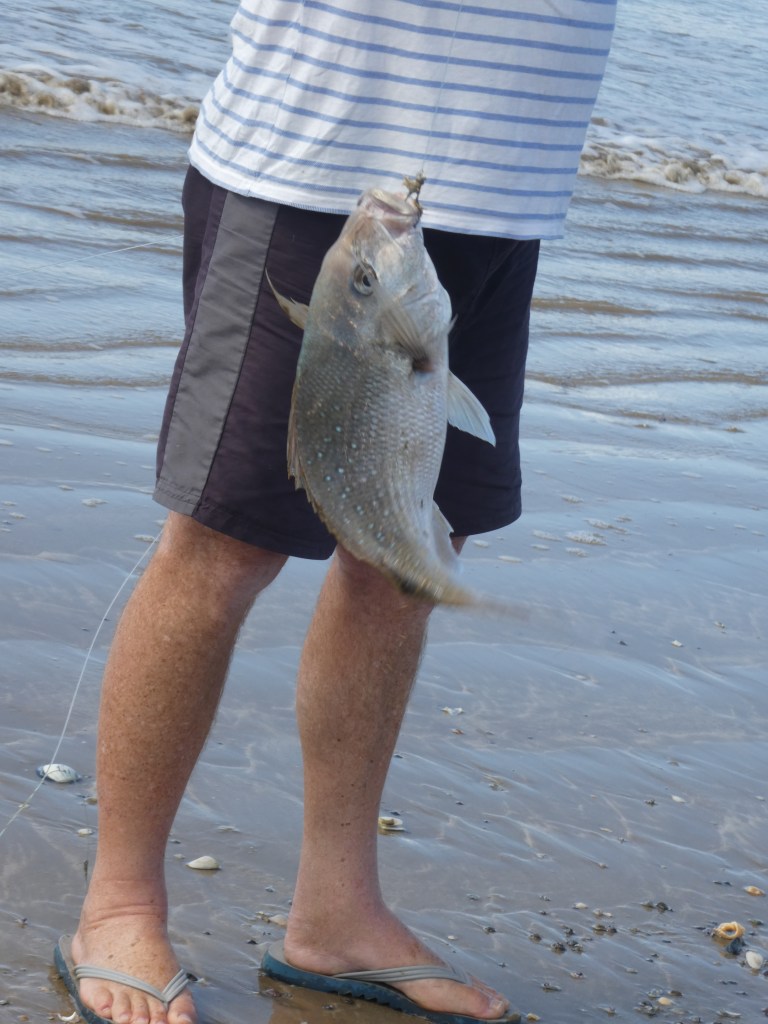 The result was two nice snapper for tea. Although the drone was sent out twice more, there were no more fish caught, but we had plenty for tea. The team wanted to be sure I got my fish and chips, so Tina and John provided the chips from their van, Marg and Kevin did the fish, and Bruce and I provided a green salad. Can’t get better than that!