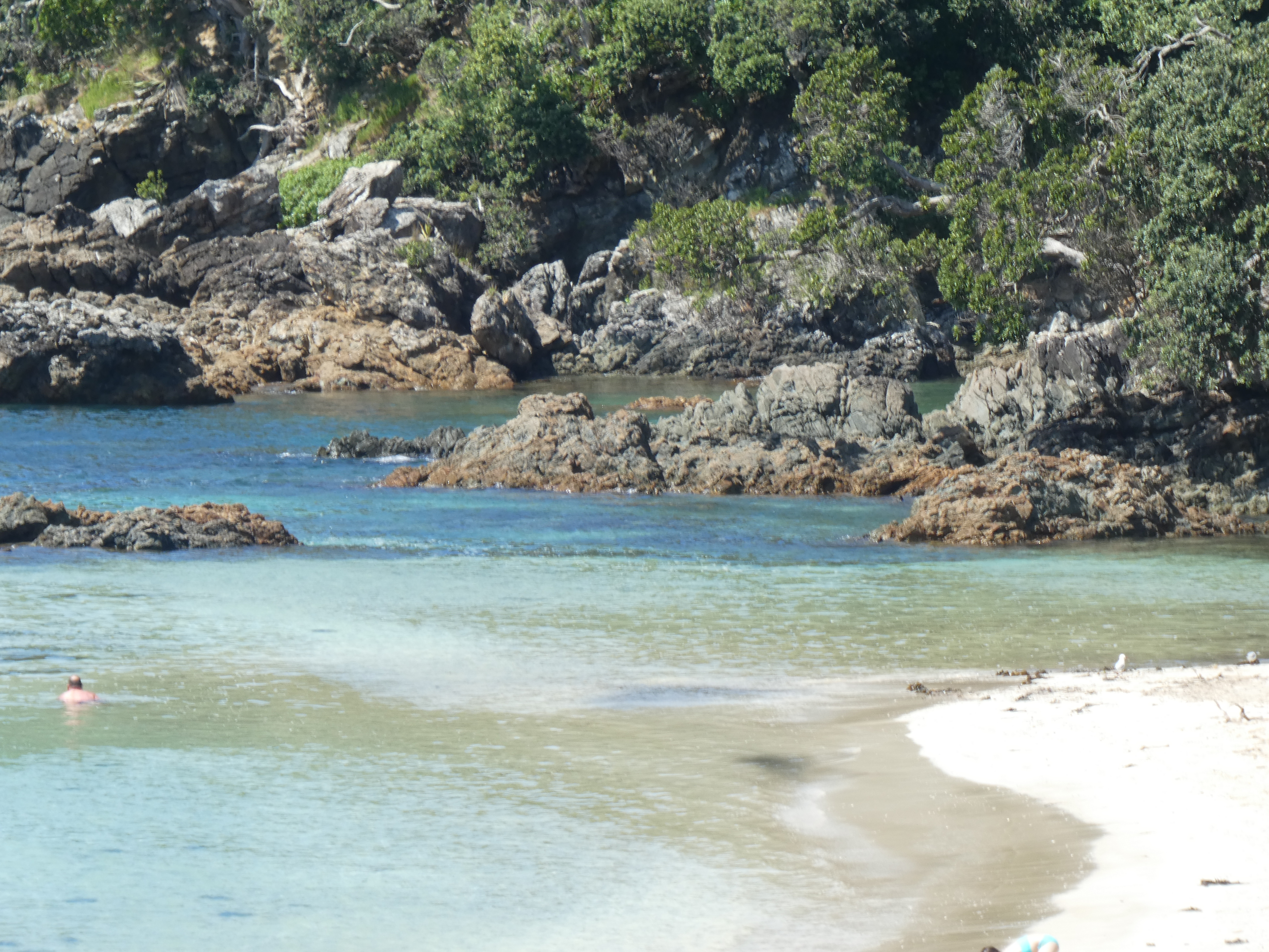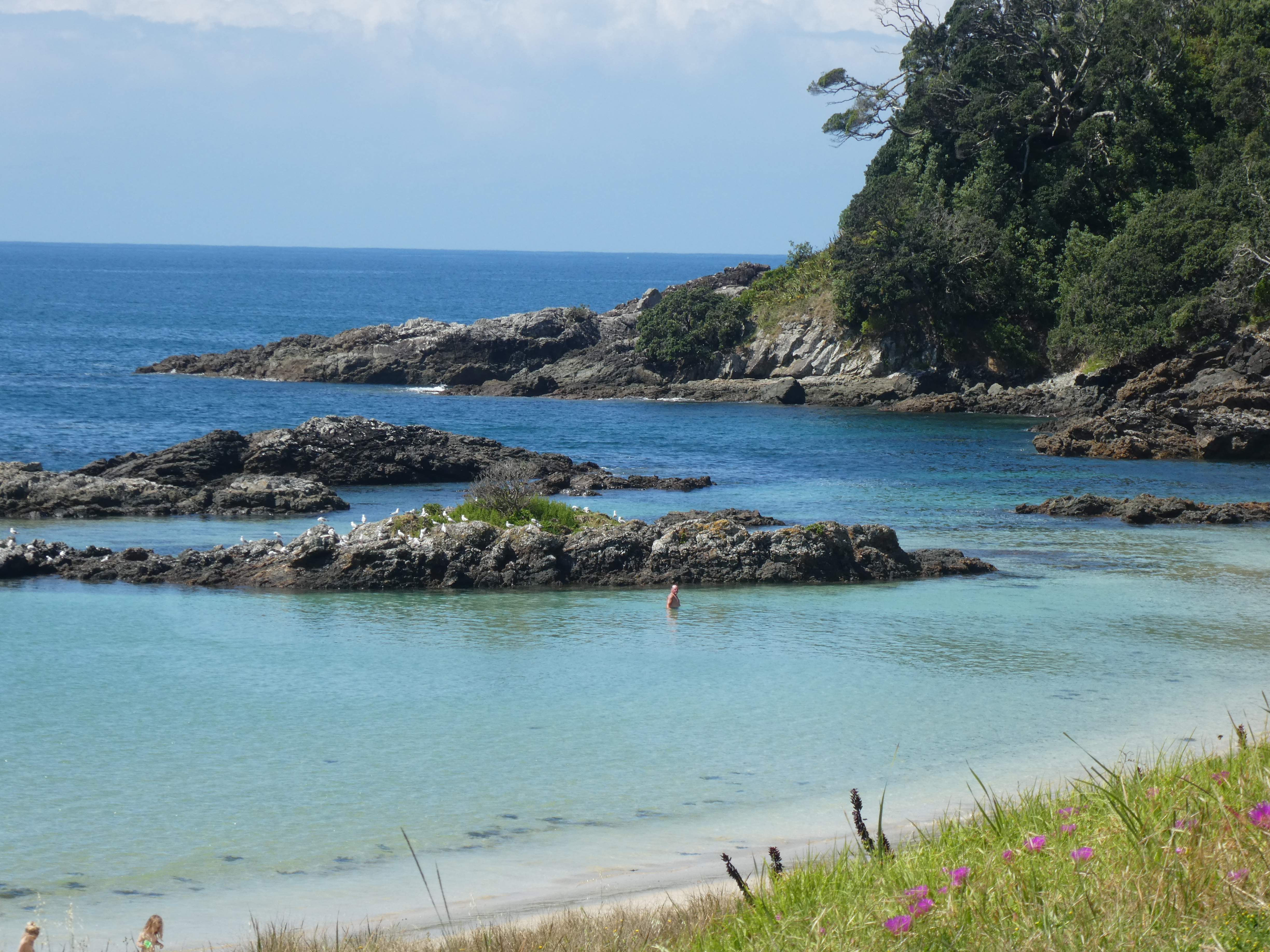Maitai Bay would have to be one of the prettiest that I have ever seen. The sand is very white and fine, and the sea was so clear it was almost like looking through a glass of water. Tina, Bruce and I just had to have a swim, our first for the season, and it did not disappoint.