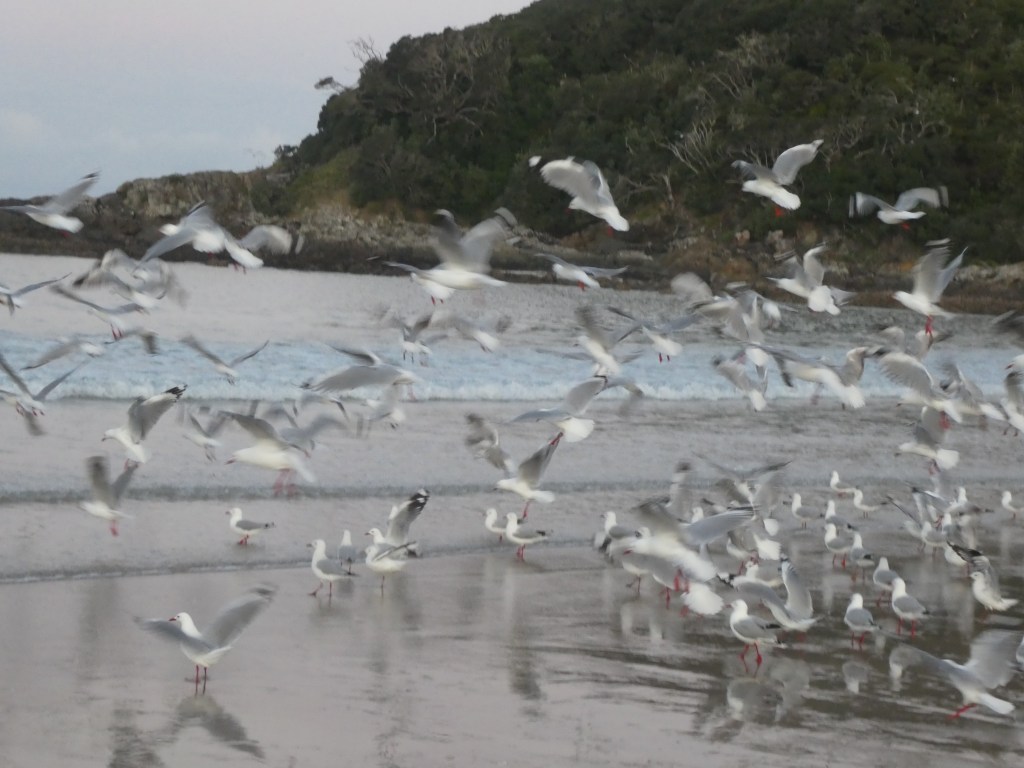Even though it was sheltered here, there was to be no fishing, as there was a rahui in place to protect the fishery. There were plenty of birds here though and we were treated to some wonderful murmurations (aerial ballet) as they prepared to roost for the night.