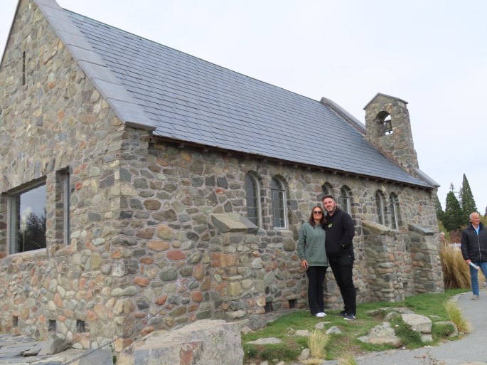 The next day we met Ben (my son) and Karina (his wife) in the township of Tekapo. They had hired a motorhome from Christchurch and were enjoying a short time away on their own, for their wedding anniversary. Together we wandered around the Church of the Good Shepherd, and the area around it, and then had morning tea together. I would have to say that the tourism industry is booming – very hard to get a photo without tourists in it. I was again struck by how “self entitled” the Asians are in general. They will push in front of you, never consider moving aside for you, and won’t even move over to let you pass on the footpaths.