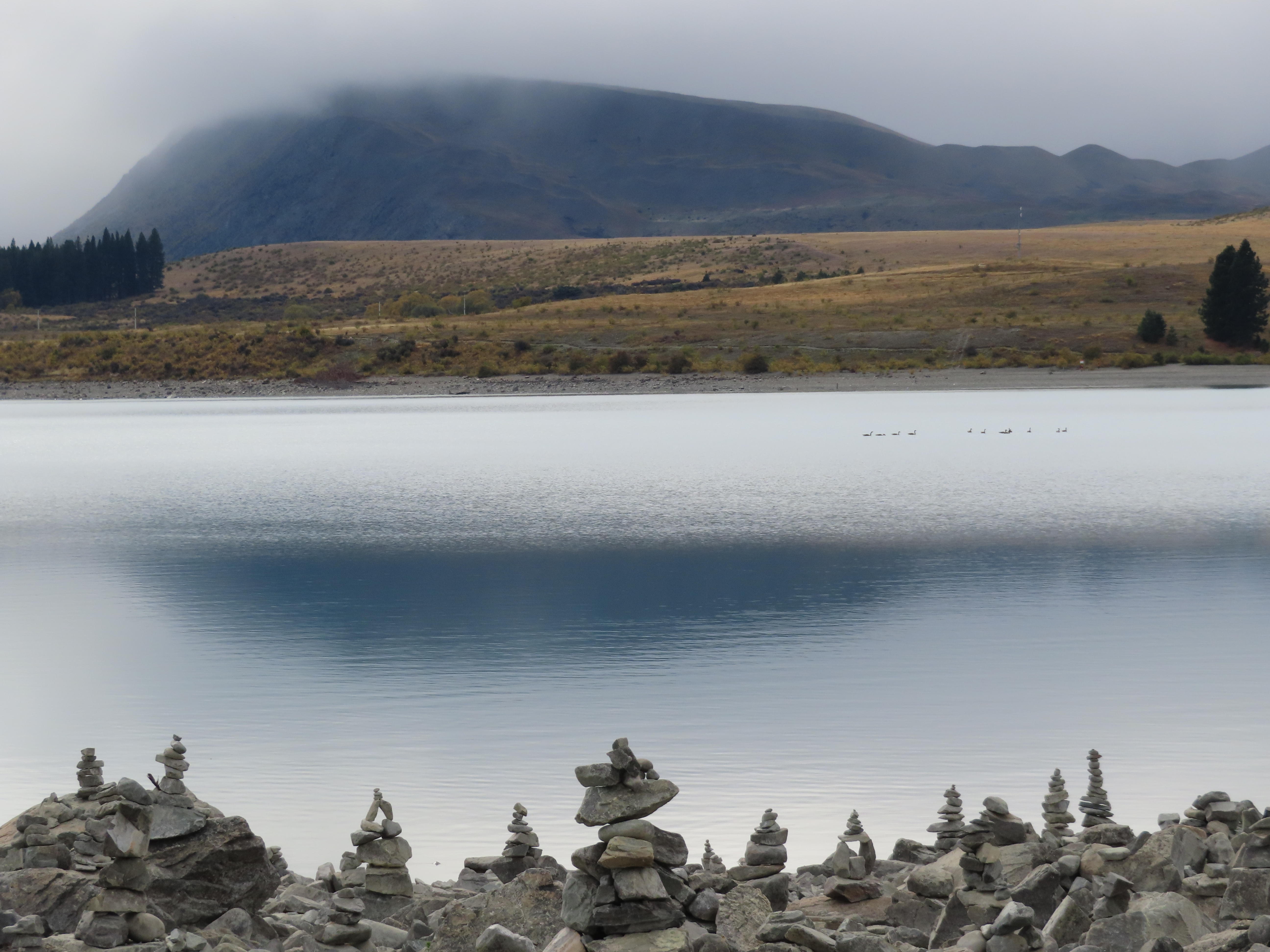 All too soon they were off, heading towards Omarama, while we decided to stay one more night before heading off southwards. It was a shame the weather didn’t completely clear. We had the odd shower, but even when it was fine, the cloud clung to the hills, preventing us from seeing the spectacular mountains behind the Lake.