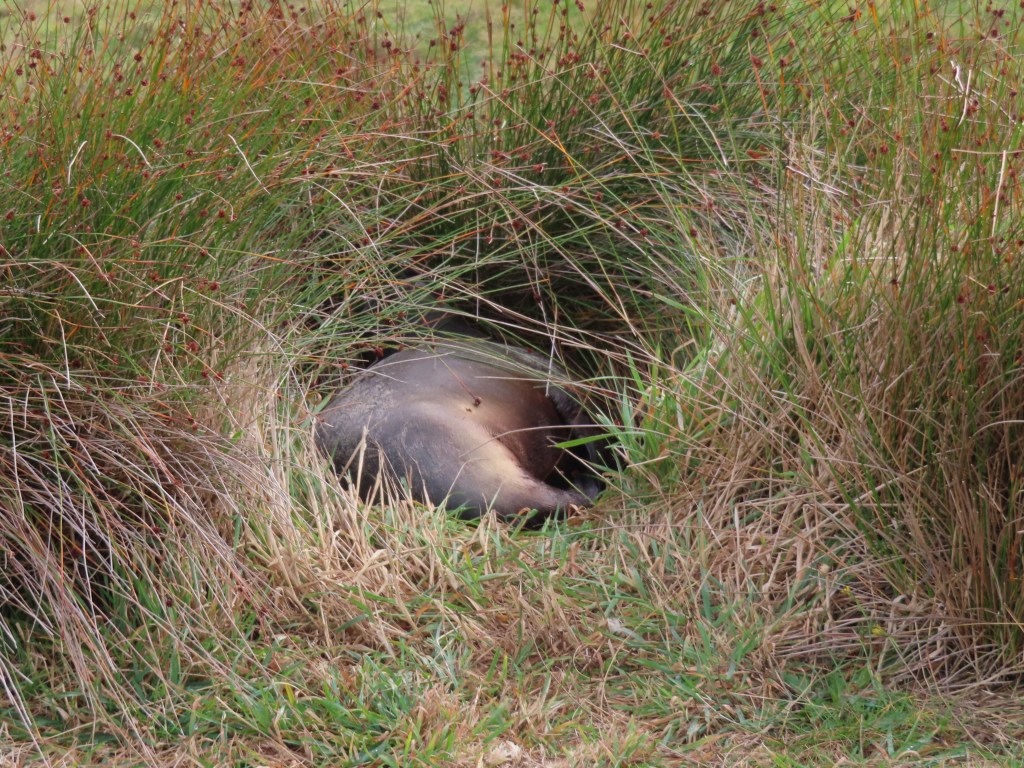 Bruce had to take the dogs away, and I kept out of its way to give it a chance to settle down, and then I gingerly picked a path through long grass on the other side of the path, hoping I did not come across any other seal lions in the process!