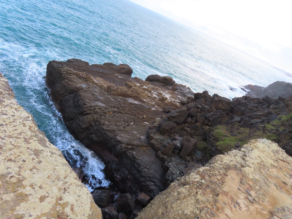 There has clearly been some erosion since we were last here, and the place is still rugged and exposed, with steep drops down to the sea.