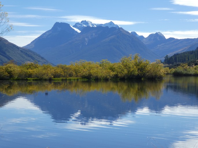 We continued along the road to Glenorchy and the view was mind blowing. Peaceful, green pasture  land with snow capped mountains rising behind, and with glimpses of the lake.
