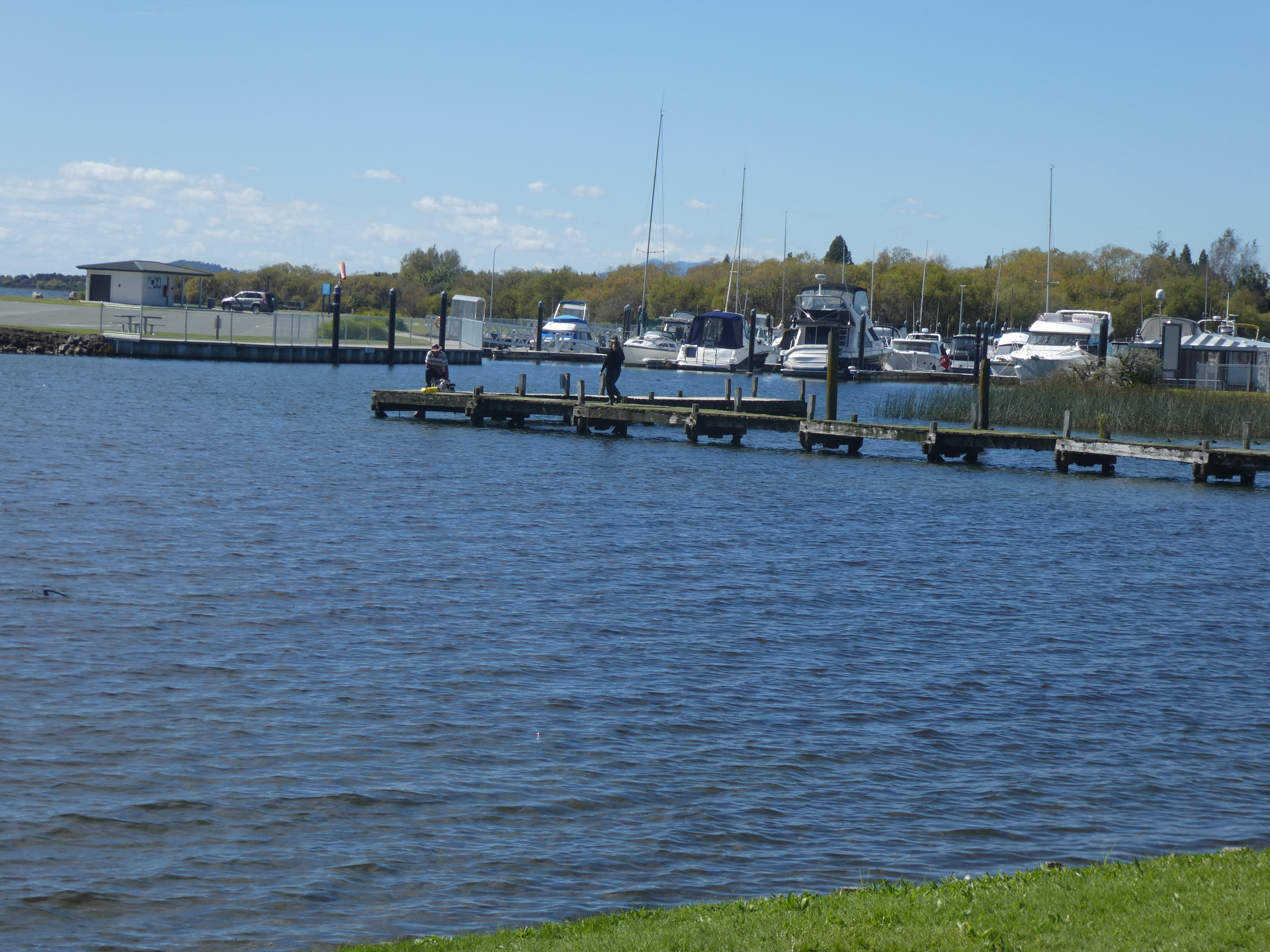 Before long we were on the road again, heading for Motueka. My cold had gone so we called in to see Auntie Ellie, who has clearly deteriorated since we were here a year ago – so sad. Then we spent the rest of the afternoon at the Mapua Wharf having a few drinks and chips with my cousin Dee and her husband David. They are a great couple and we thoroughly enjoyed our time with them.